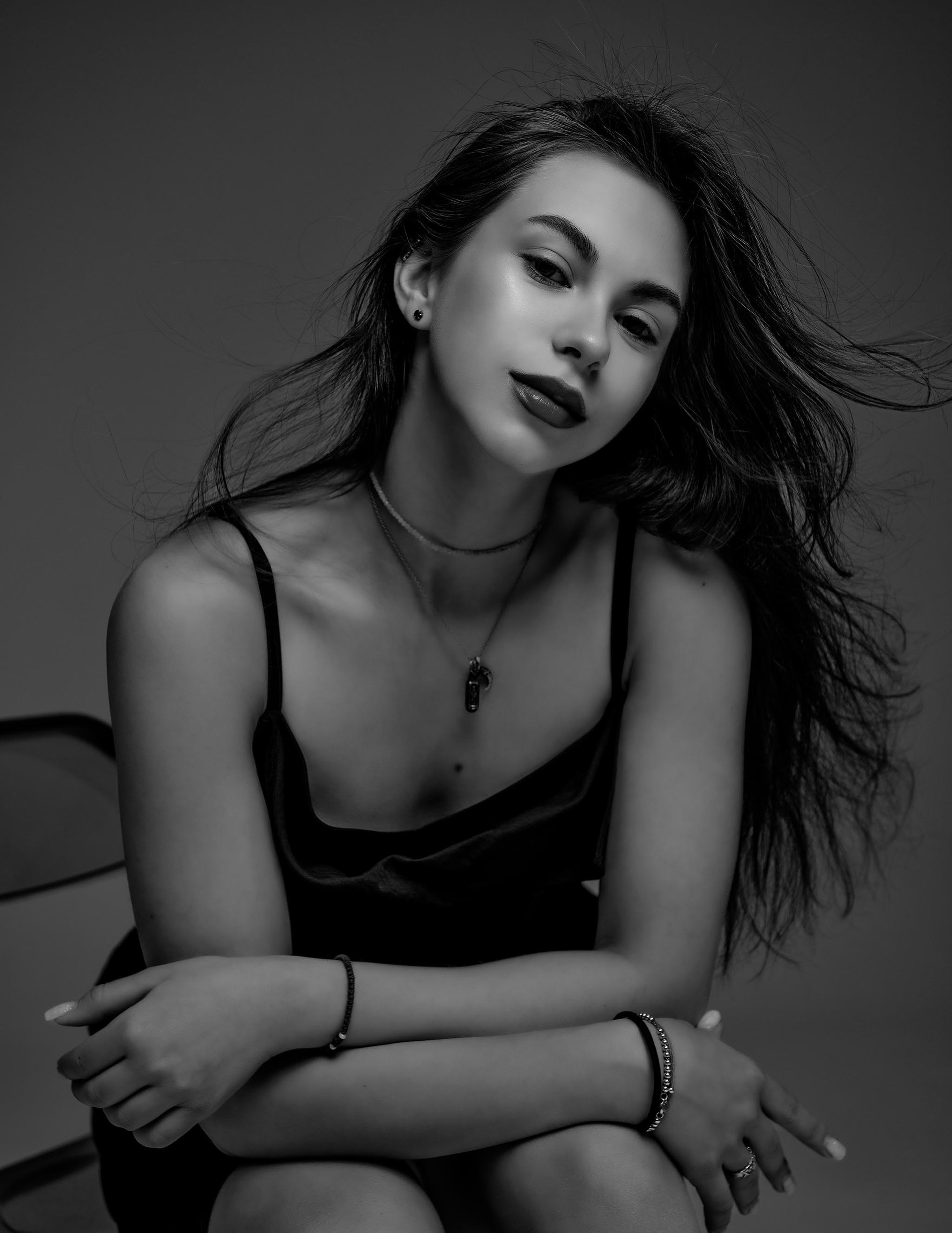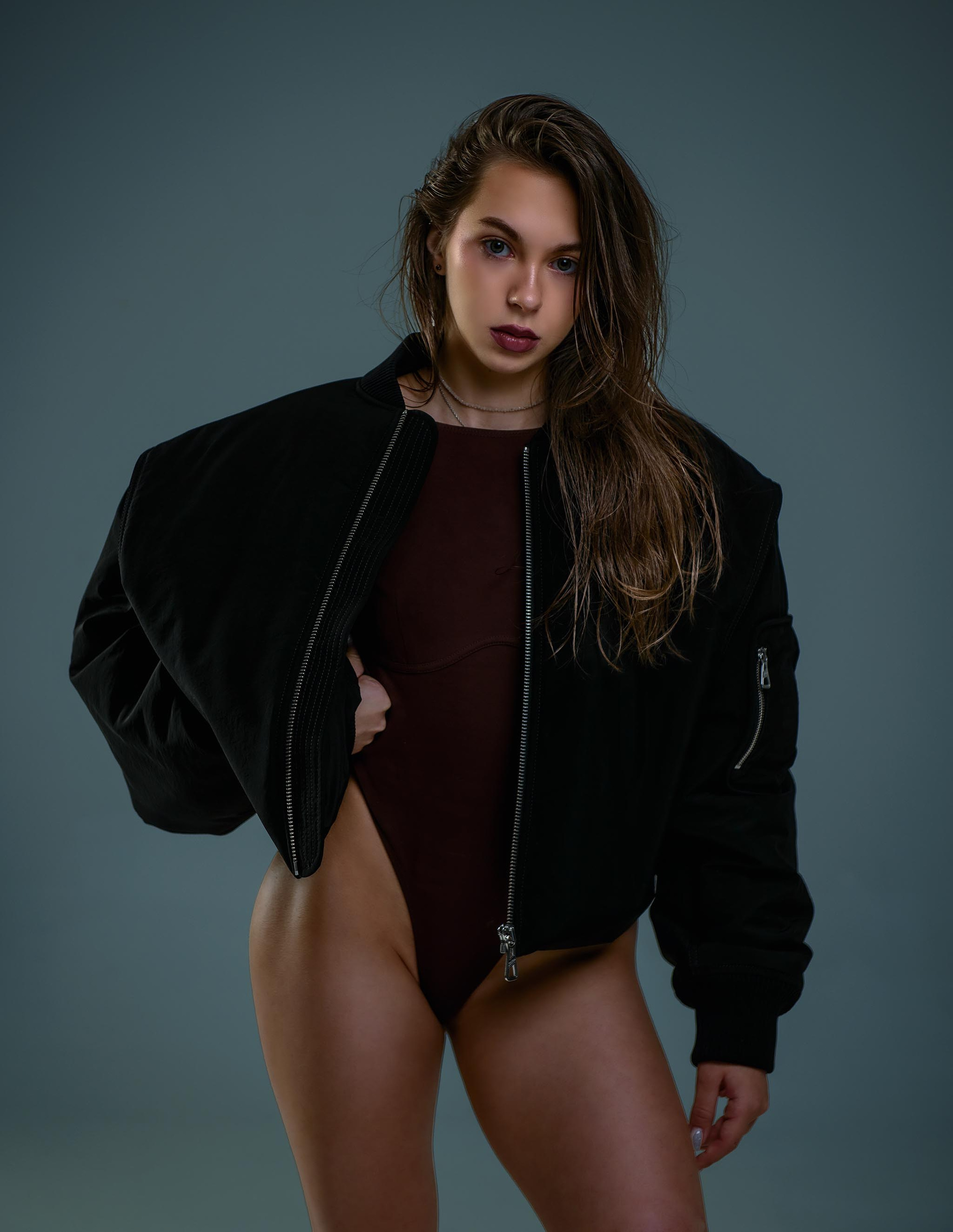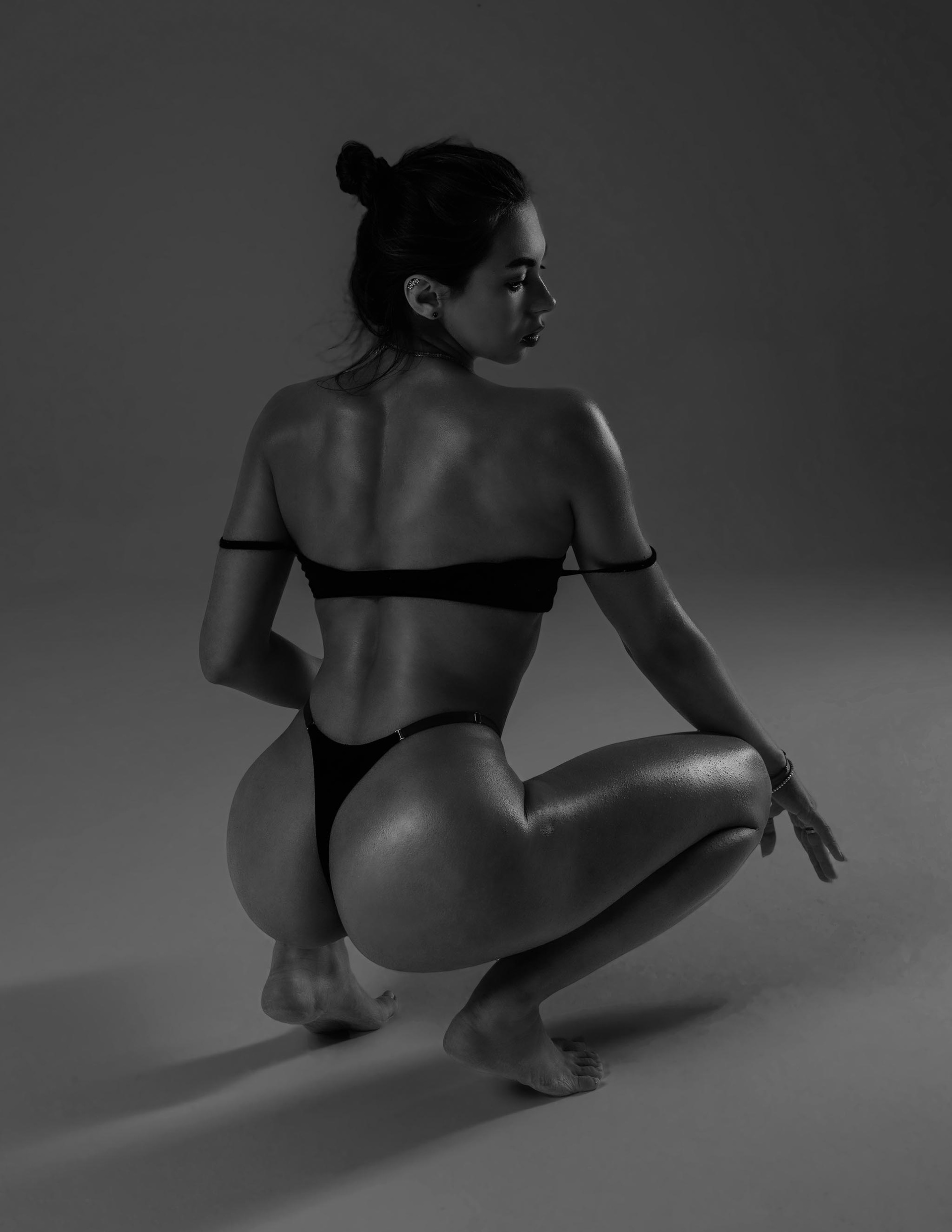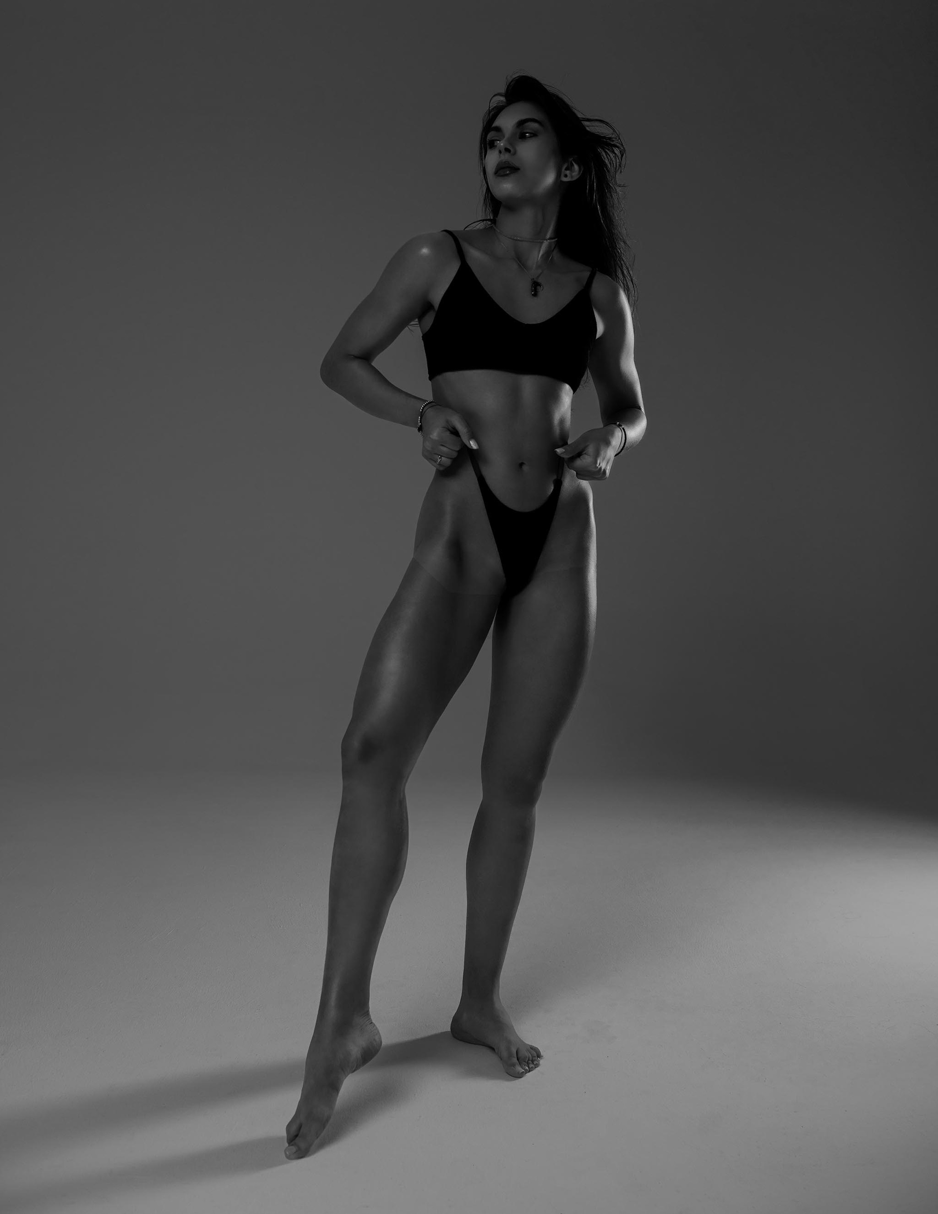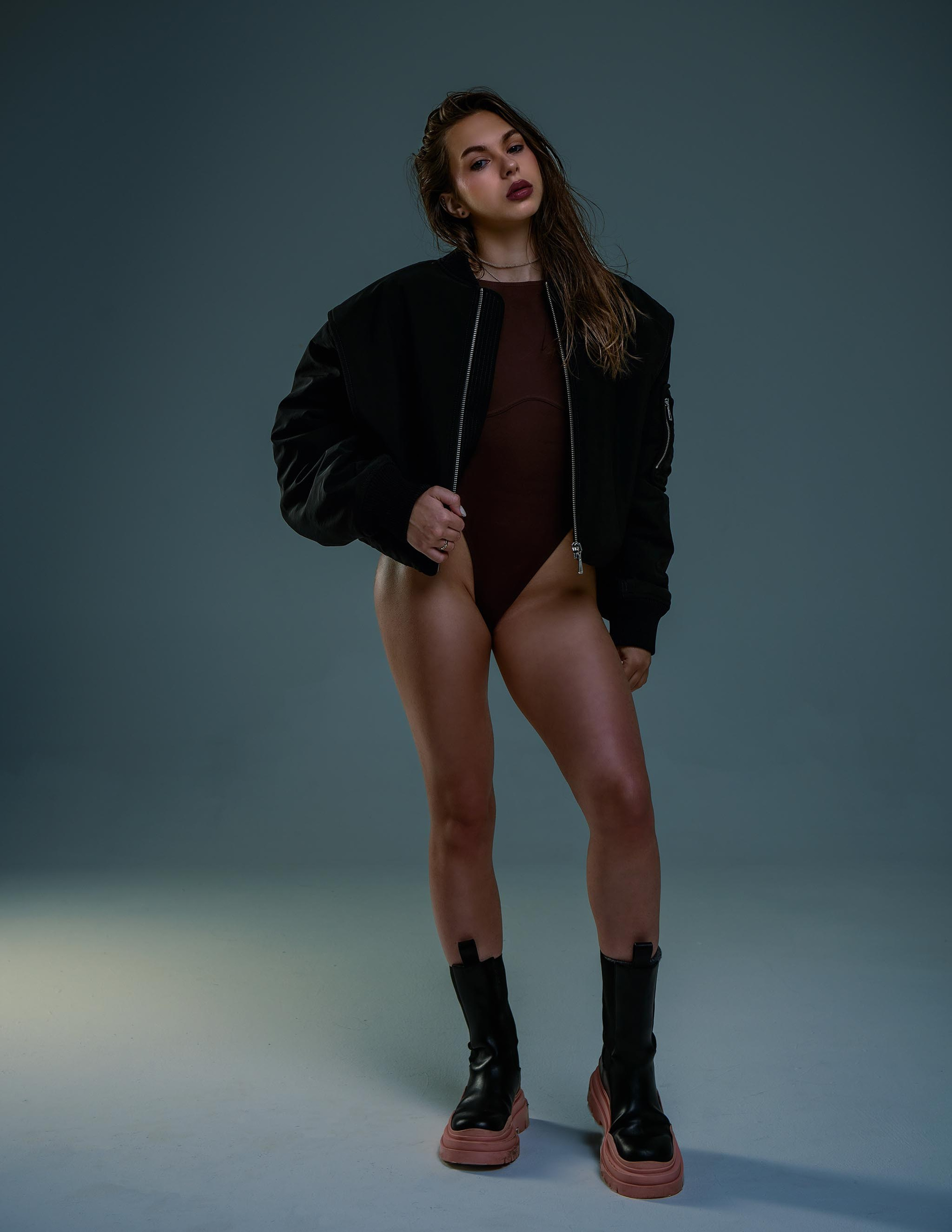 Мы сняли несколько образов — с акцентом на тело, в платье, и и даже в бомбере, ведь зимаа была на дворе. Сделал два варианта — цвет и чёрно-белый, посмотрите и напишите, какой вам нравится больше!